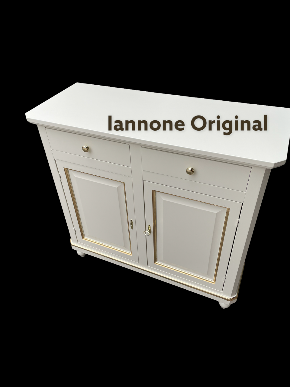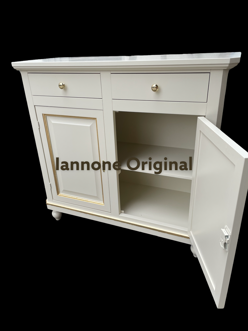 CREDENZA AVORIO CON PROFILI IN FOGLIA ORO DISPENSA IN LEGNO