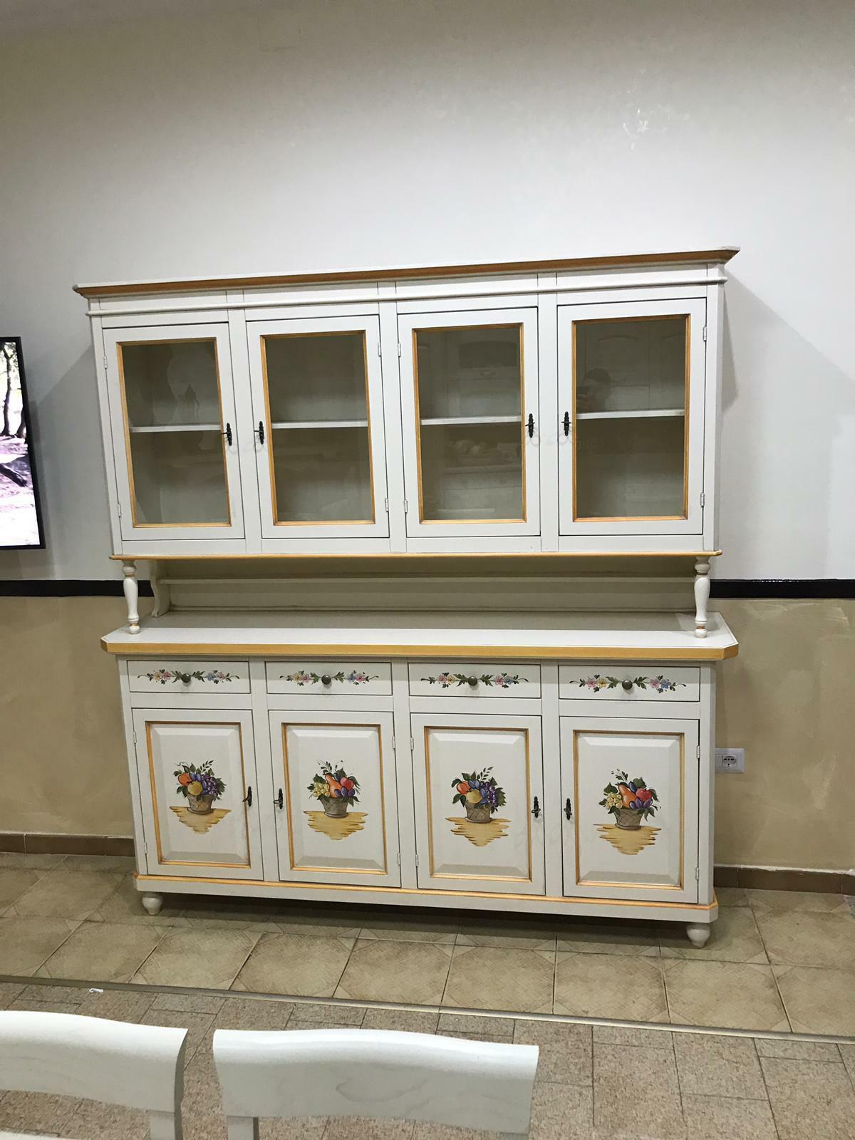 CREDENZA CRISTALLIERA DIPINTA A MANO DECORATA IN VARI COLORI